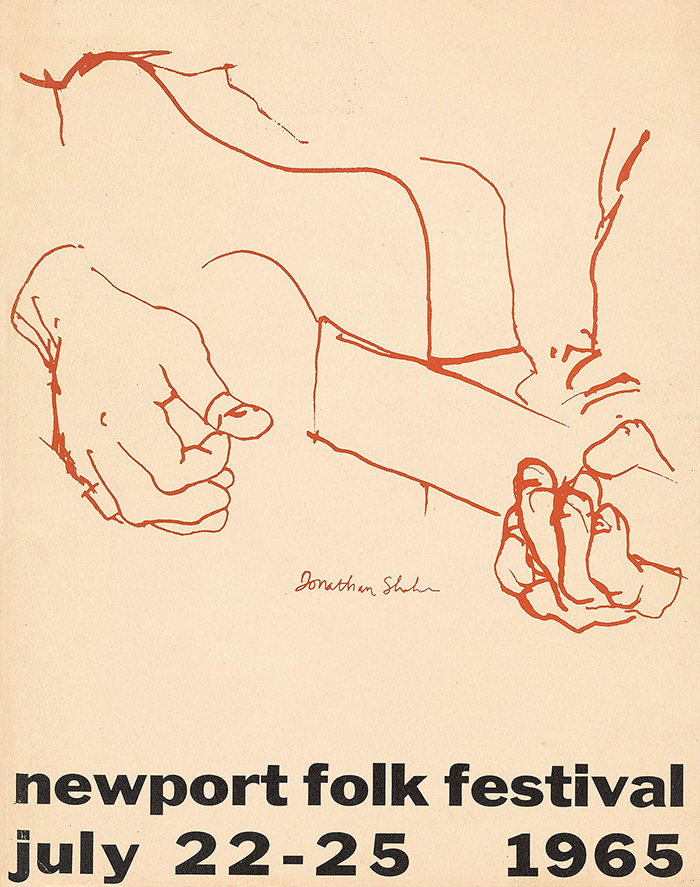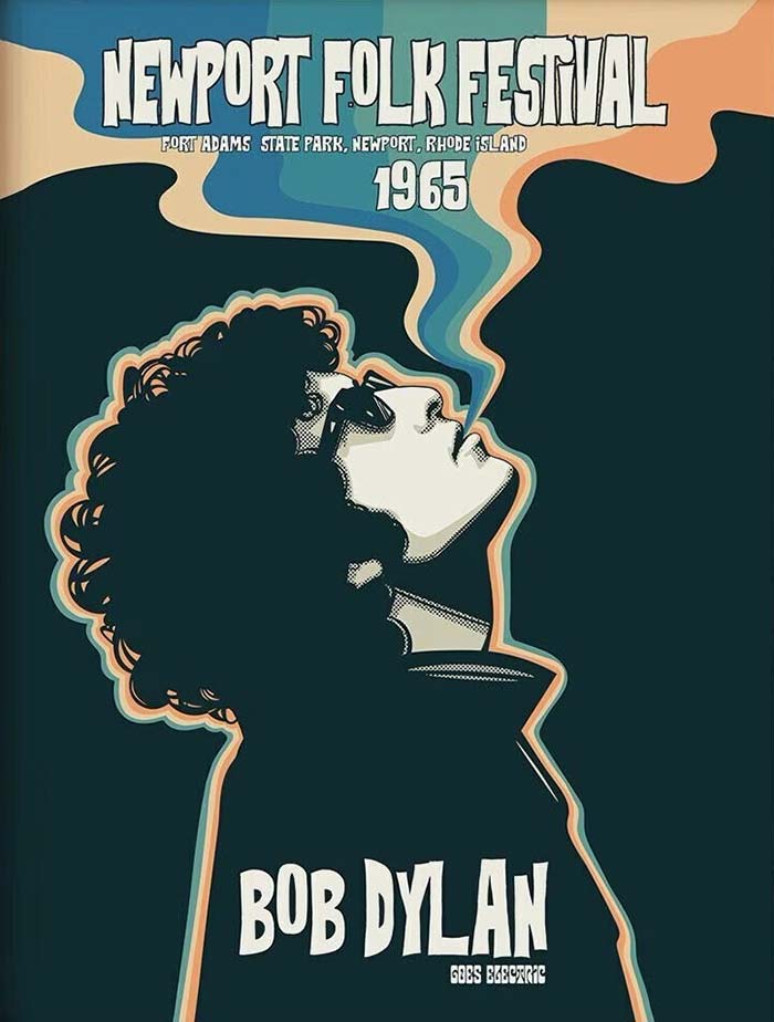 Στο Newport Folk Festival η αφίσα για την πέμπτη χρονιά του φεστιβάλ, δημιουργήθηκε από τον Michael Ferguson των The Charlatans, ενός συγκροτήματος στο προσκήνιο της ψυχεδελικής μουσικής σκηνής. Είχε ένα εντελώς διαφορετικό στυλ από τις αφίσες που είχαν προηγηθεί για το Newport Folk, το οποίο κατά βάση έφερε απλές γραμματοσειρές. Το poster είχε παρόμοιες γραμματοσειρές και γράμματα με μεταγενέστερες ψυχεδελικές αφίσες συναυλιών.