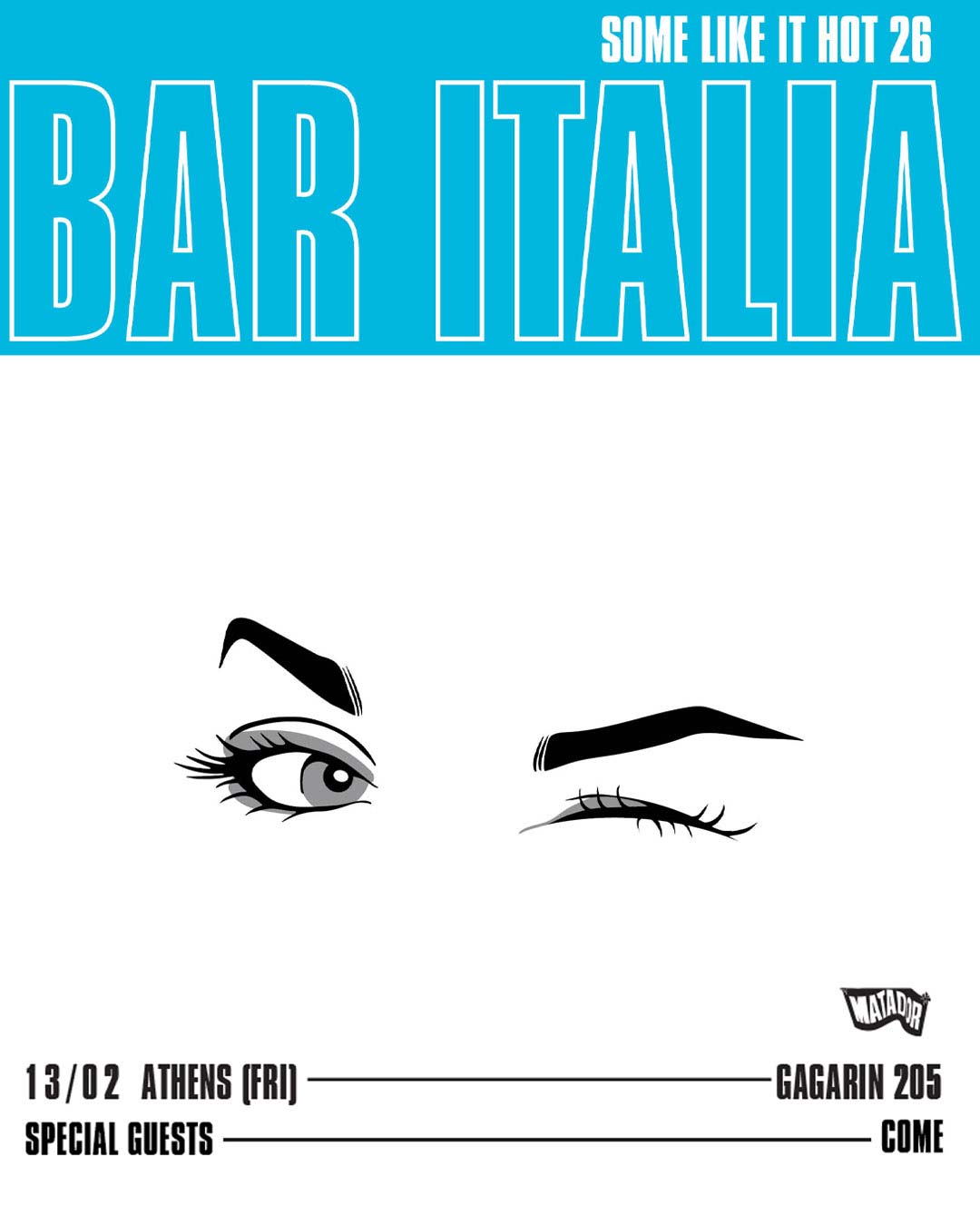 Οι Bar Italia φτάνουν στην Αθήνα για μία μοναδική συναυλία την Παρασκευή 13 Φεβρουαρίου στο Gagarin. Με τις χαρακτηριστικές ατμοσφαιρικές μελωδίες τους, τους δυναμικούς ρυθμούς και τα συναισθηματικά τους lyrics, οι Bar Italia υπόσχονται μία βραδιά γεμάτη ένταση και μουσική που καθηλώνει. Mαζί τους οι Come, ένα raw, riff-oriented rock τρίο που γεννήθηκε μέσα από τον ρομαντισμό ενός παγανιστικού γάμου και μιας καλοκαιρινής busking περιπέτειας στη Μύκονο.
