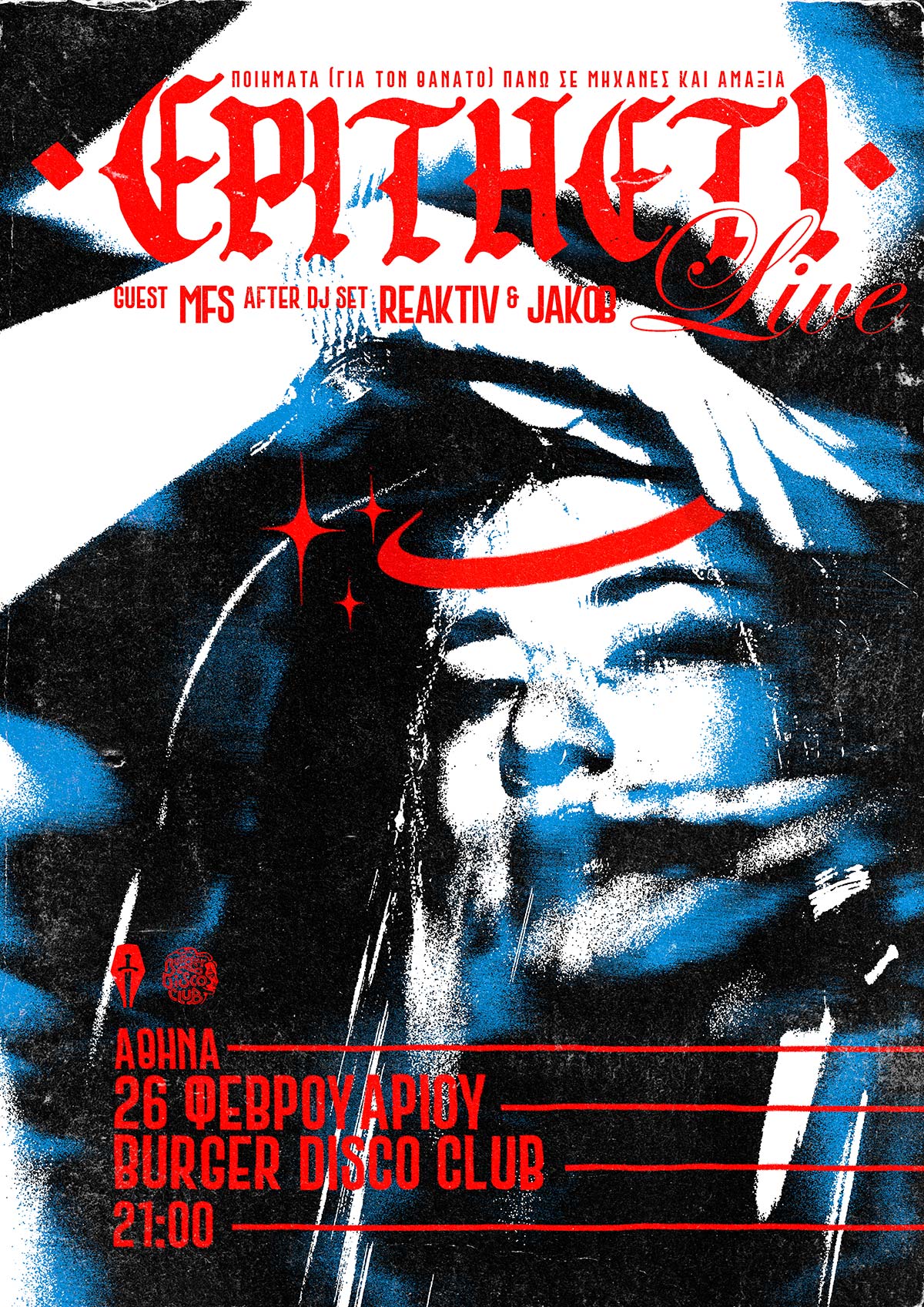 Η Αλεξάνδρα Επίθετη είναι μία από τις πιο δραστήριες φωνές της νεότερης spoken word σκηνής: ποιήτρια και performer, podcaster (Heartbreak Hotel), μέλος της κολεκτίβας The Bad Poetry Social Club, με κυκλοφορίες που κινούνται ανάμεσα στην προφορική ποίηση και τη μουσική, και με μια σταθερά βιωματική, αστική γραφή που ακουμπά τη γενιά των «διαρκώς μεταβατικών» τριαντάρηδων. Το solo EP της Ποιήματα (για τον θάνατο) σε μηχανές και αμάξια αποτέλεσε έναν κομβικό, σκοτεινό κύκλο στη διαδρομή της, ενώ το επερχόμενο LP ΟΧΙ ΠΙΑ ΔΑΚΡΥΑ, που πρόκειται να κυκλοφορήσει την Άνοιξη από την MINOS EMI, σηματοδοτεί ήδη μια νέα φάση.