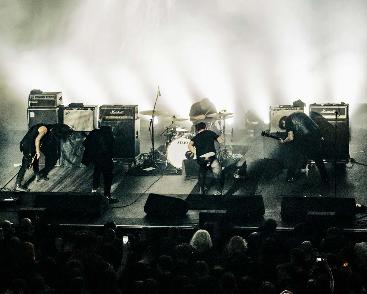 Τα visuals πίσω από τη μπάντα δεν λειτουργούν σαν σκηνικό, αλλά σαν ένας δεύτερος, αόρατος χαρακτήρας. Ασπρόμαυρες φιγούρες, τοπία ξεγυμνωμένα από οτιδήποτε ανθρώπινα, όλα δεμένα με τη μουσική σε έναν ενιαίο παλμό. Μια πολυεπίπεδη εμπειρία και το μοναδικό που μπορεί να κάνει o θεατής είναι να συμμετέχει με προσήλωση σε αυτό που συμβαίνει στη σκηνή. Οι Amenra δεν προσπαθούν να εντυπωσιάσουν, προσπαθούν να δείξουν το μέσα. Και όσο οι εικόνες άλλαζαν, τόσο το κοινό βυθιζόταν σε αυτό το συλλογικό υπόγειο, εκεί όπου η σιωπή ανάμεσα στις νότες είναι εξίσου σημαντική με την ίδια την ένταση. Δεν υπήρχε καμία επιτήδευση, μόνο μια ωμή, σχεδόν αρχέγονη ανάγκη να ειπωθεί κάτι που αλλιώς δεν λέγεται.