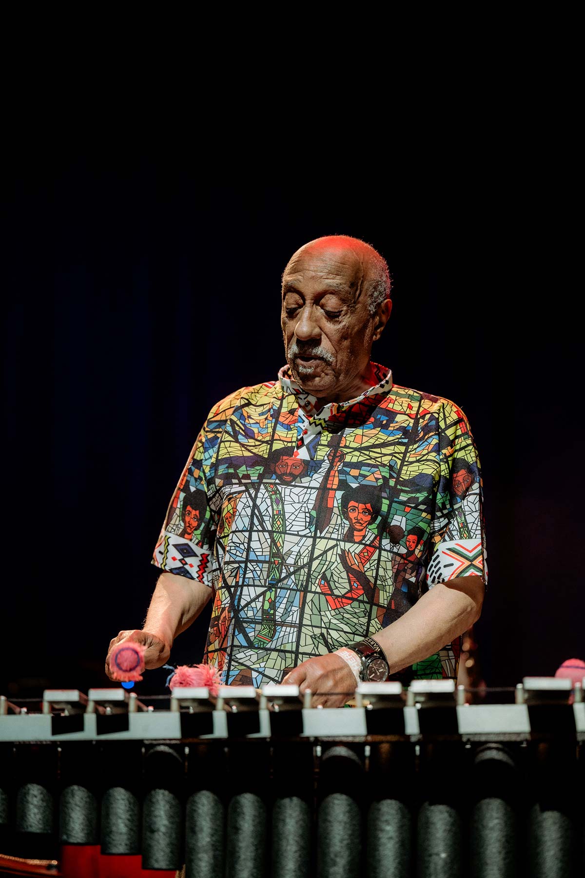 Ο αγαπημένος Mulatu Astatke πότε στο βιμπράφωνο και πότε στα κρουστά και όταν έκανε το δικό του σόλο οι υπόλοιποι στάθηκαν ακίνητοι αν όχι προσοχή, σίγουρα προσεχτικοί μην χάσουν λεπτό σαν σε παράδοση μαθήματος. Κάθε νότα λιτή, στοχευμένη, γεμάτη νόημα, χωρίς ανούσιους εντυπωσιασμούς.