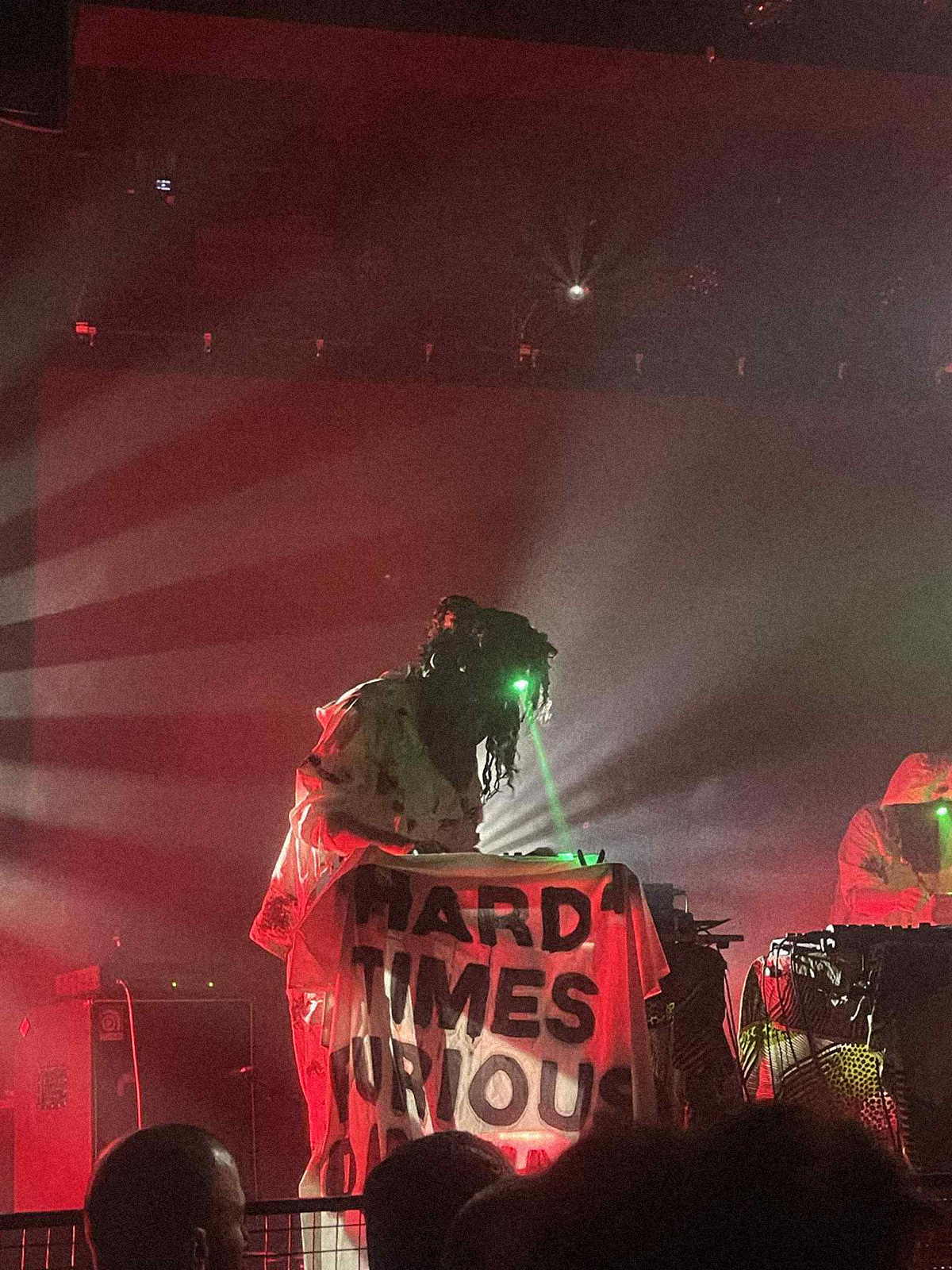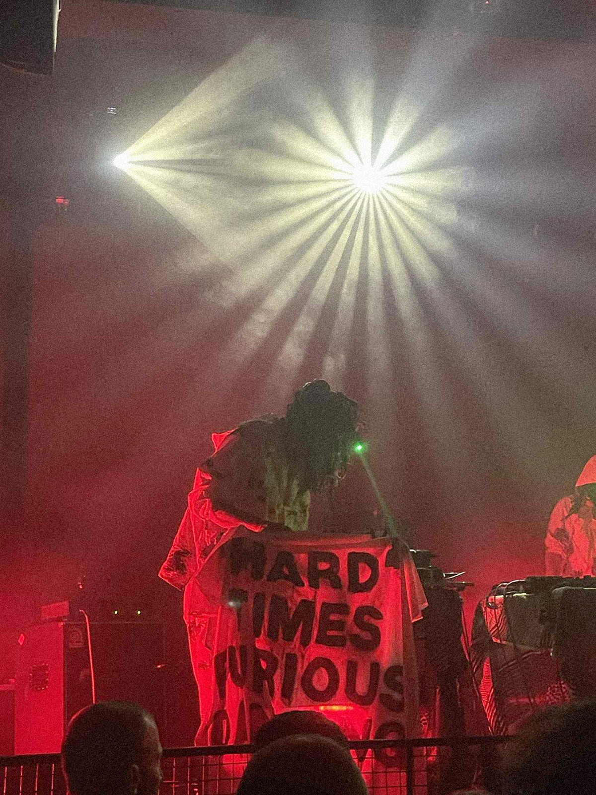 Σε έναν κόσμο που μοιάζει να καίγεται, το καρφιτσωμένο πανί στο δεξί μέρος της σκηνής με την ένδειξη “Hard Times Furious Dancing” δίνει τη λύση και συνοψίζει τη βραδιά.
