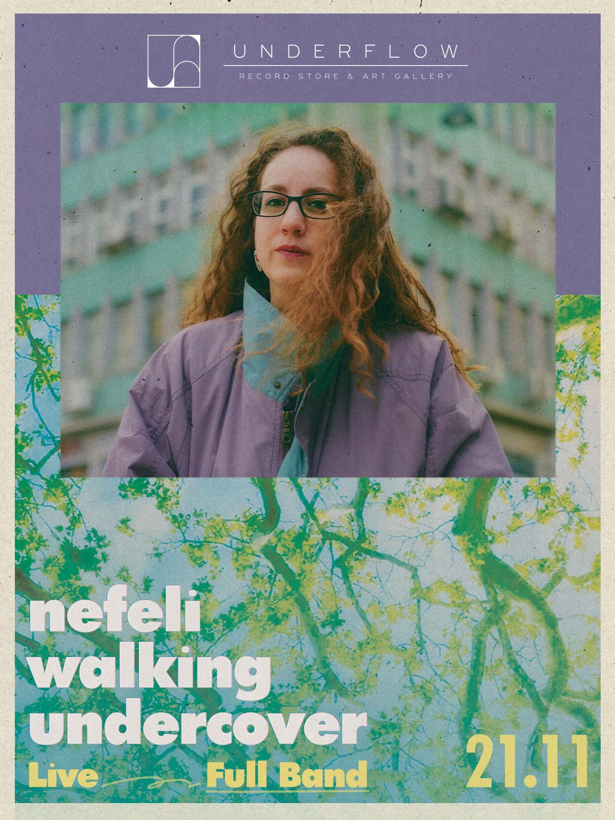 Μετά από λίγο καιρό συναυλιακής ησυχίας, η Nefeli Walking Undercover ξανασυναντιέται με το κοινό στη ζεστασιά και την τρυφερότητα της σκηνής του δισκοπωλείου Underflow. Μέσα από τους ήχους του πιάνου, των βιολιών, του κλαρινέτου, της κιθάρας, του μπάσου, των τυμπάνων και των εξημερωμένων πολυφωνιών, η Νεφέλη θα αφηγηθεί ιστορίες για τις πόλεις και τα χωράφια, το φως, το σκοτάδι, τις μάχες εντός, τις συγκρούσεις εκτός και τα μικρά στραφταλίσματα θαλπωρής των πραγμάτων και των ανθρώπων. Η βραδιά θα περιλαμβάνει υλικό από τον δίσκο Στοιχεία του Άχρονου Κόσμου που κυκλοφόρησε τον Μάρτιο του 2025 αλλά και από το σύνολο της δισκογραφημένης ποπ φολκ μουσικής δωματίου της Nefeli Walking Undercover, καθώς και ένα τσικ από το διασκευαστικό παρελθόν της.