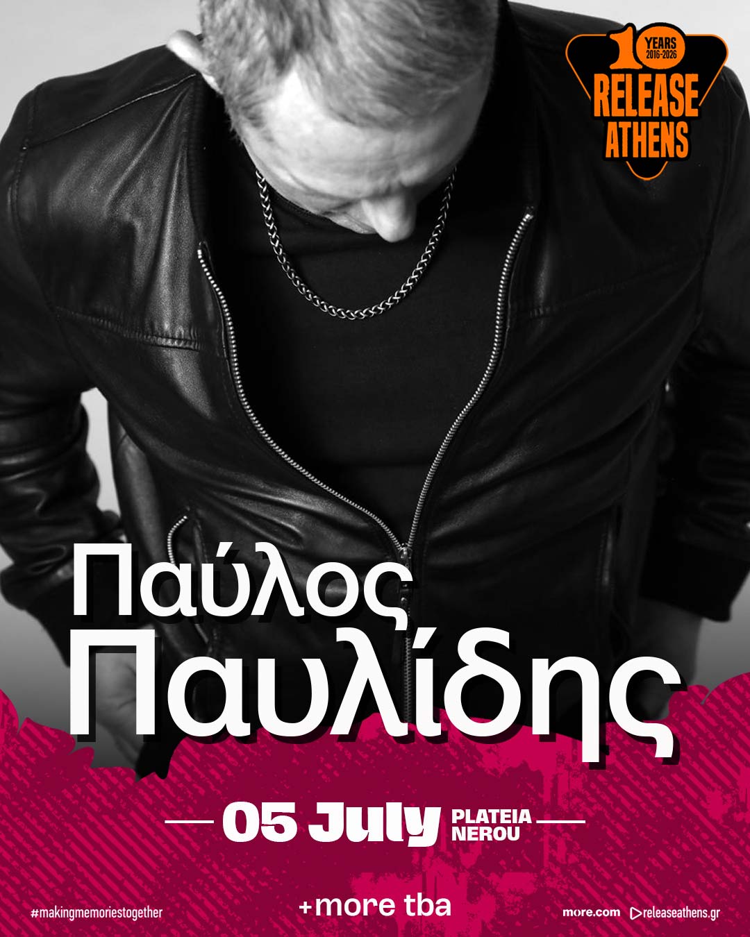 Το Release Athens 2026 υποδέχεται τον Παύλο Παυλίδη, την Κυριακή 5 Ιουλίου, στην Πλατεία Νερού. Έναν χρόνο μετά τη συναυλία-σταθμό στον κατάμεστο ίδιο χώρο, ο Παύλος και η μπάντα του επιστρέφουν για να μας χαρίσουν ξανά μια ονειρική εμπειρία δίπλα στη θάλασσα, με μελωδίες, στίχους και εικόνες που μας έχουν εμπνεύσει και έχουν γίνει κομμάτι της ζωής μας.